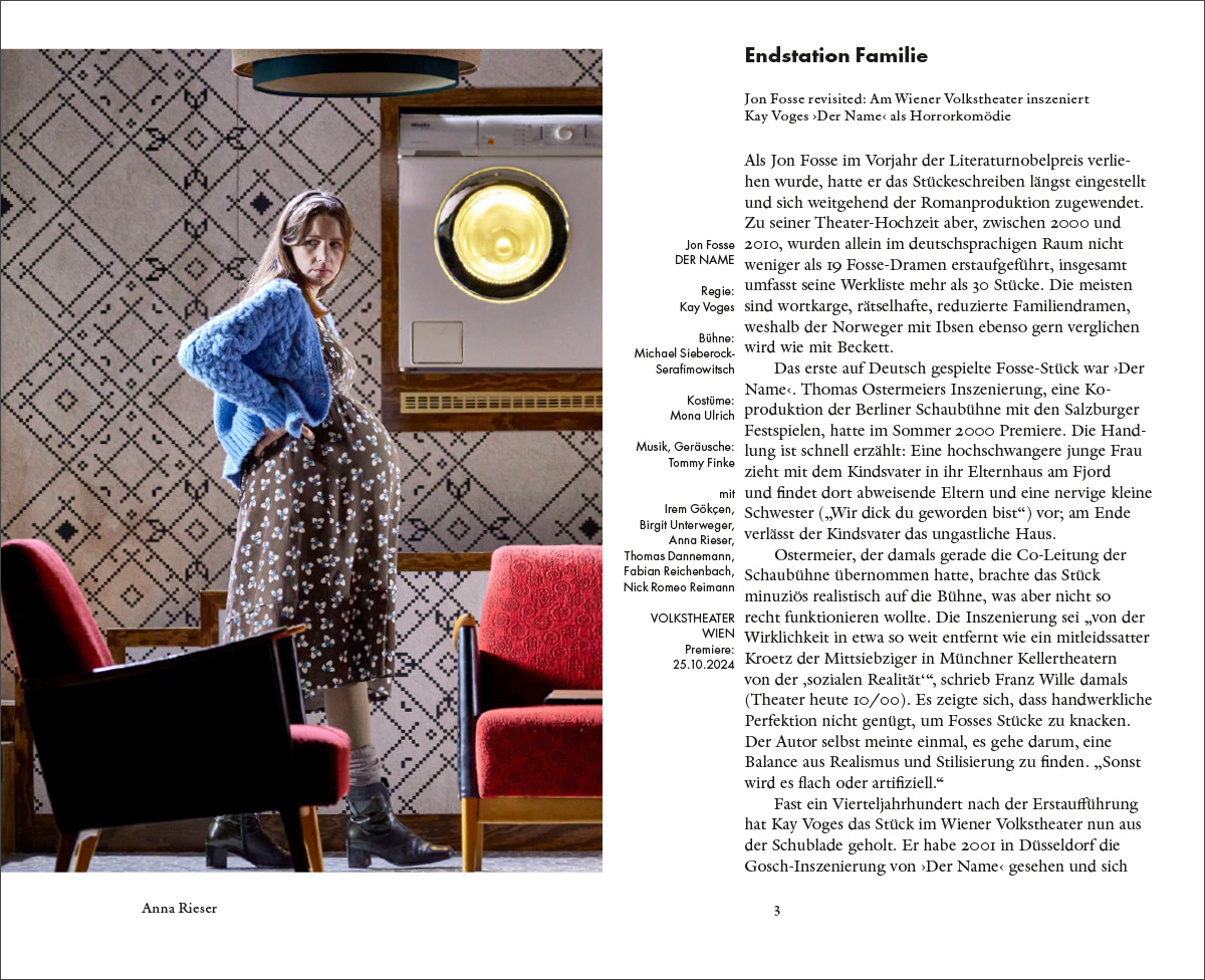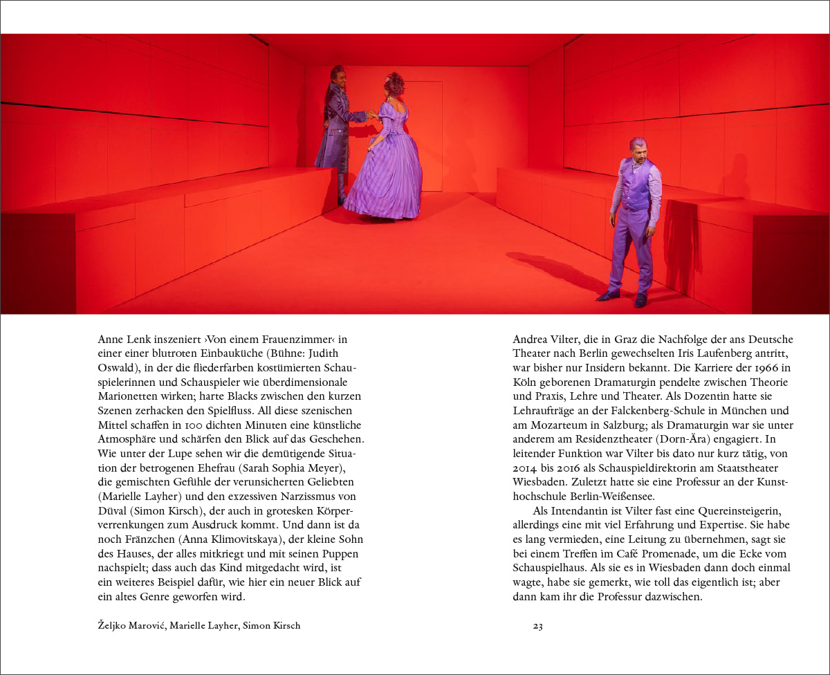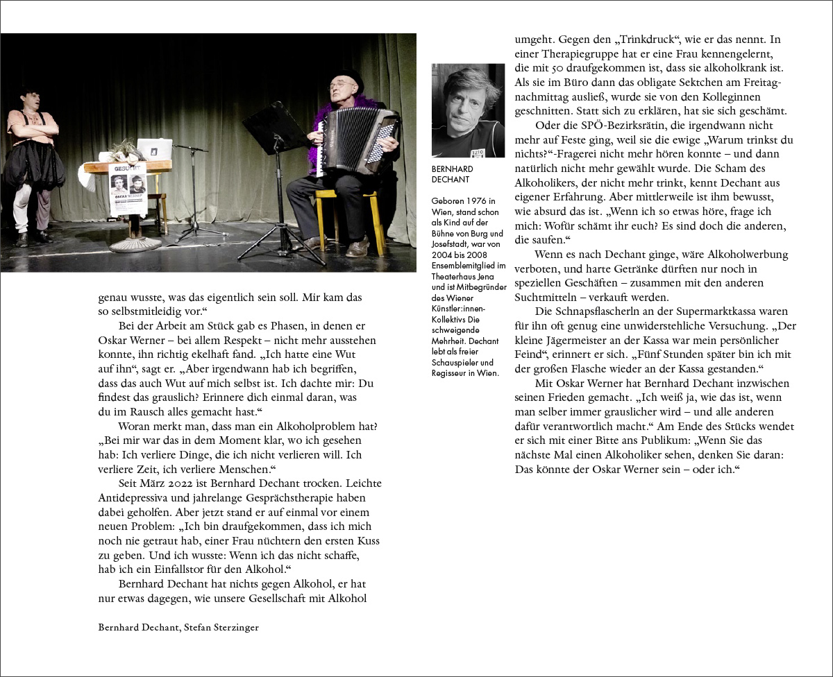 Stücke: Die Welt im Rücken (Akademietheater), Wunschloses Unglück (Kasino, Burgtheater), sowie ein Portrait vom Schauspieler Haymon Maria Buttinger und einem Essay über das Wiener Theaterpublikum