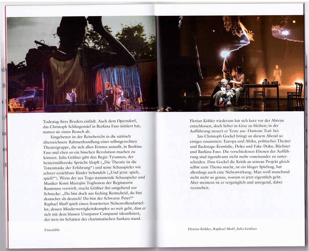 Stücke: Die Kinder der Toten (Steirischer Herbst), Faust :: Mein Brustkorb : Mein Helm (Schauspielhaus Graz), Die Nacht der Maulwürfe (Steirischer Herbst) und einem Nachruf auf den Regisseur und Autor Ernst M. Binder