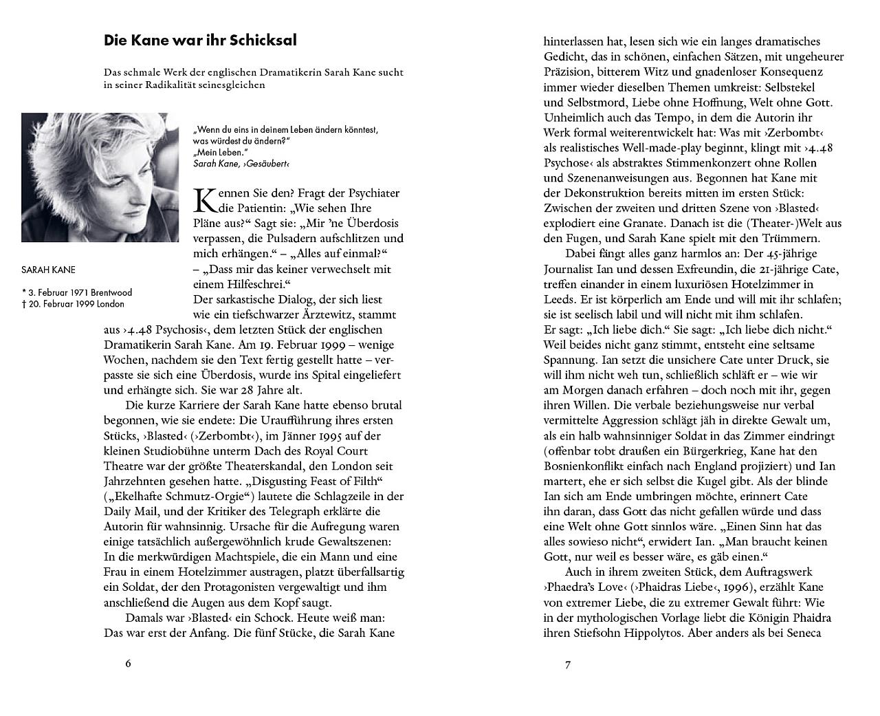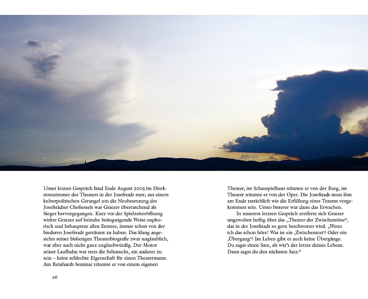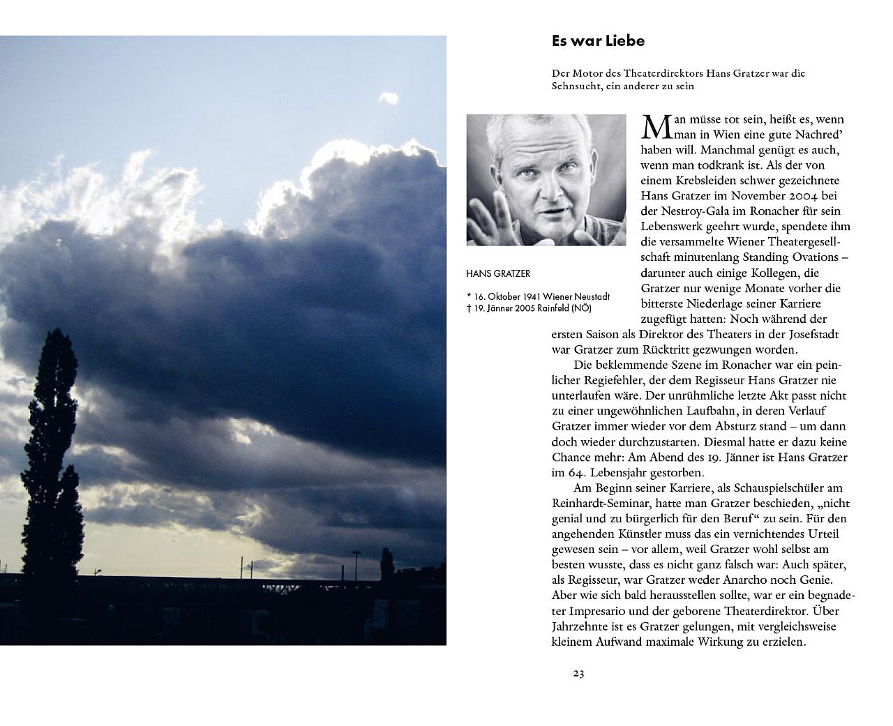 Stücke: Die Welt im Rücken (Akademietheater), Wunschloses Unglück (Kasino, Burgtheater), sowie ein Portrait vom Schauspieler Haymon Maria Buttinger und einem Essay über das Wiener Theaterpublikum