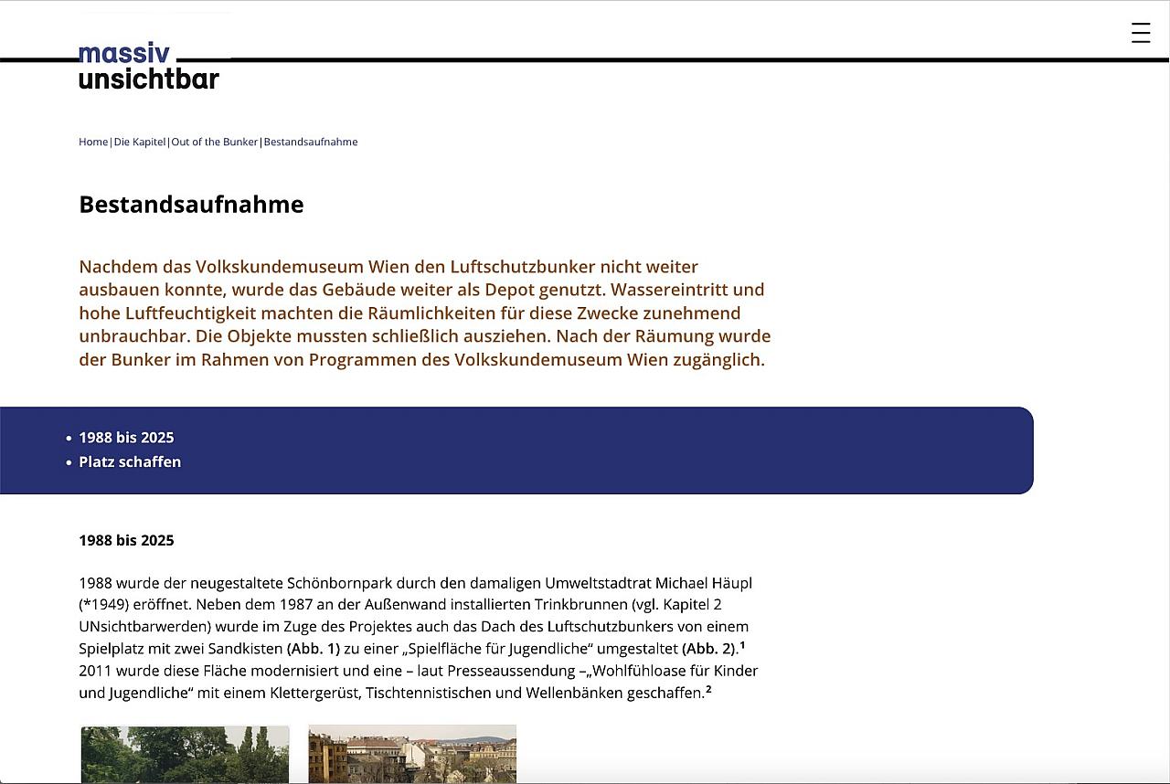 mit einem auftrag der kulturkommission josefstadt, den bunker zu kontextualisieren, hat das volkskundemuseum ein konzept für das erinnerungsprojekt ausgearbeitet und in detailierter recherche geschichte und gegenwart aufgearbeitet.